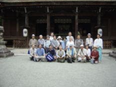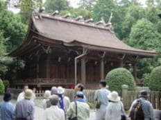 バスを乗り継いで多田神社に到着。実際は満願寺から遊歩道を20分ほど歩けばここに着くのですが、お年寄りも多いということでバスで行くことになりました。次に来るときは歩いてみたいですね。社務所で事前に案内を頼んであったため、拝殿の方に通され(通常は解放していないようです)、中でお払いをしていただき、その後禰宜の方に拝殿の他に本殿、満仲・頼光・頼信・頼義・義家の廟所、特別に見せてもらった政所跡などを案内をしていただきました。