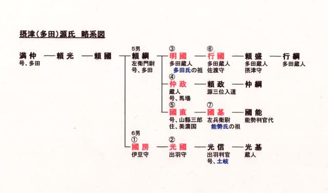 ちなみに、源家七塔の関係者の系図は次のようになります。